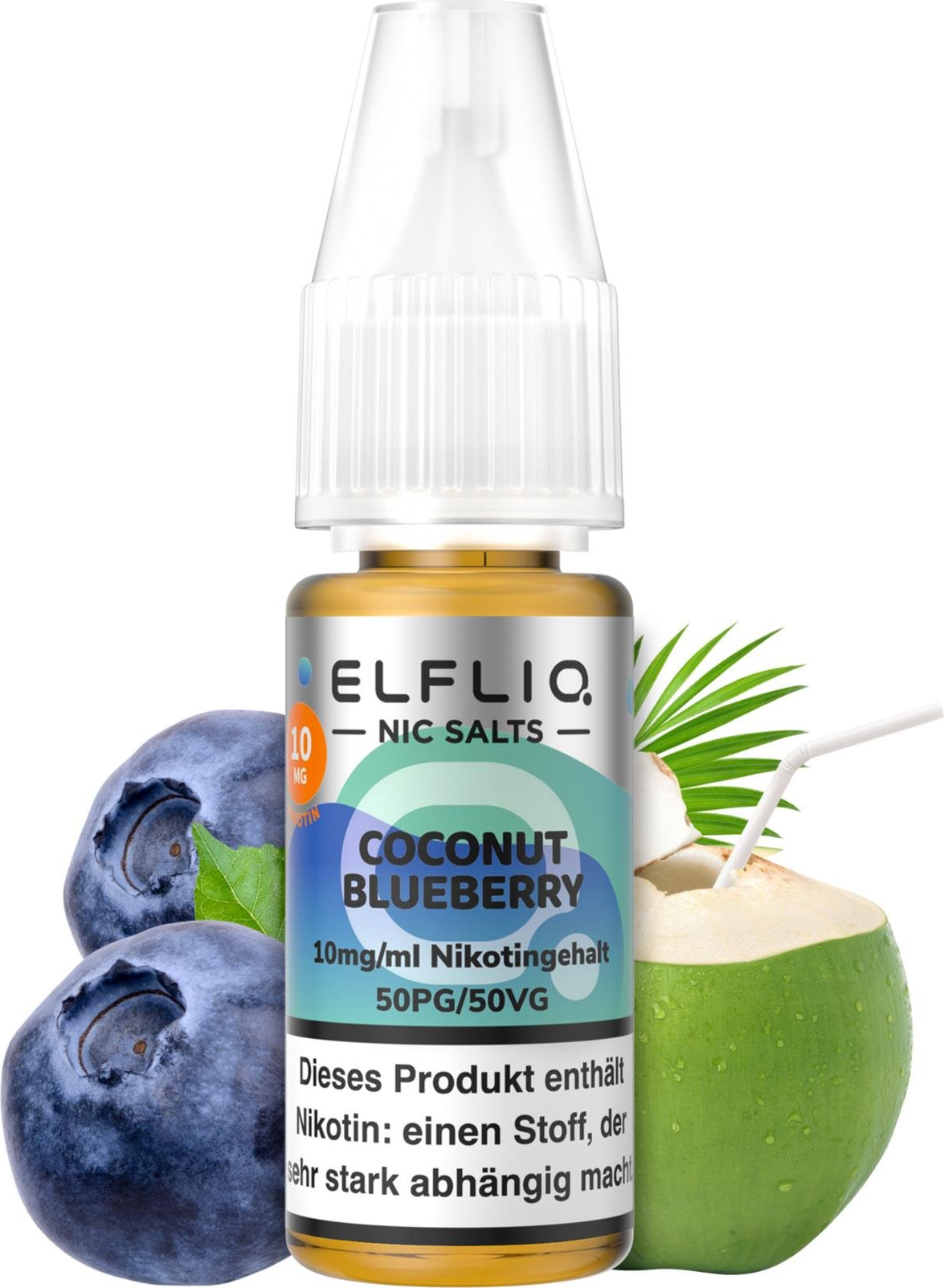 E-Liquid ELFLIQ Nic Salts made by Elfbar - Coconut Blueberry (Kokosnuss Blaubeere) in 10er Abpackung, 10mg Nikotin, 10ml Inhalt (Einzelverpackung mit EAN) Mischung 50% Propylene Glycol - 50% pflanzliches Glycerin (mit Steuerbanderole C - Steueranteil 2,60)