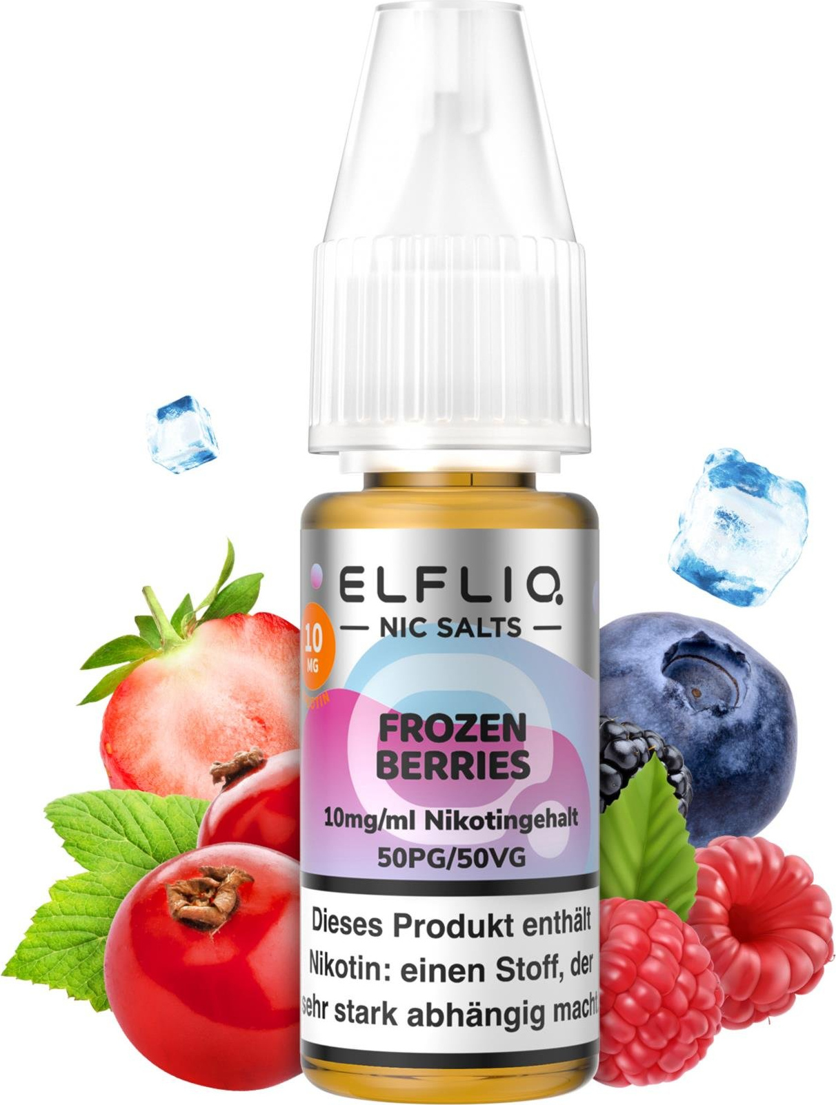 E-Liquid ELFLIQ Nic Salt made by Elfbar - Frozen Berries (gefrosteter Beerenmix) in 10er Abpackung 10mg Nikotin, 10ml Inhalt (Einzelverpackung mit EAN) Mischung 50% Propylene Glycol - 50% pflanzliches Glycerin (mit Steuerbanderole C - Steueranteil 2,60)