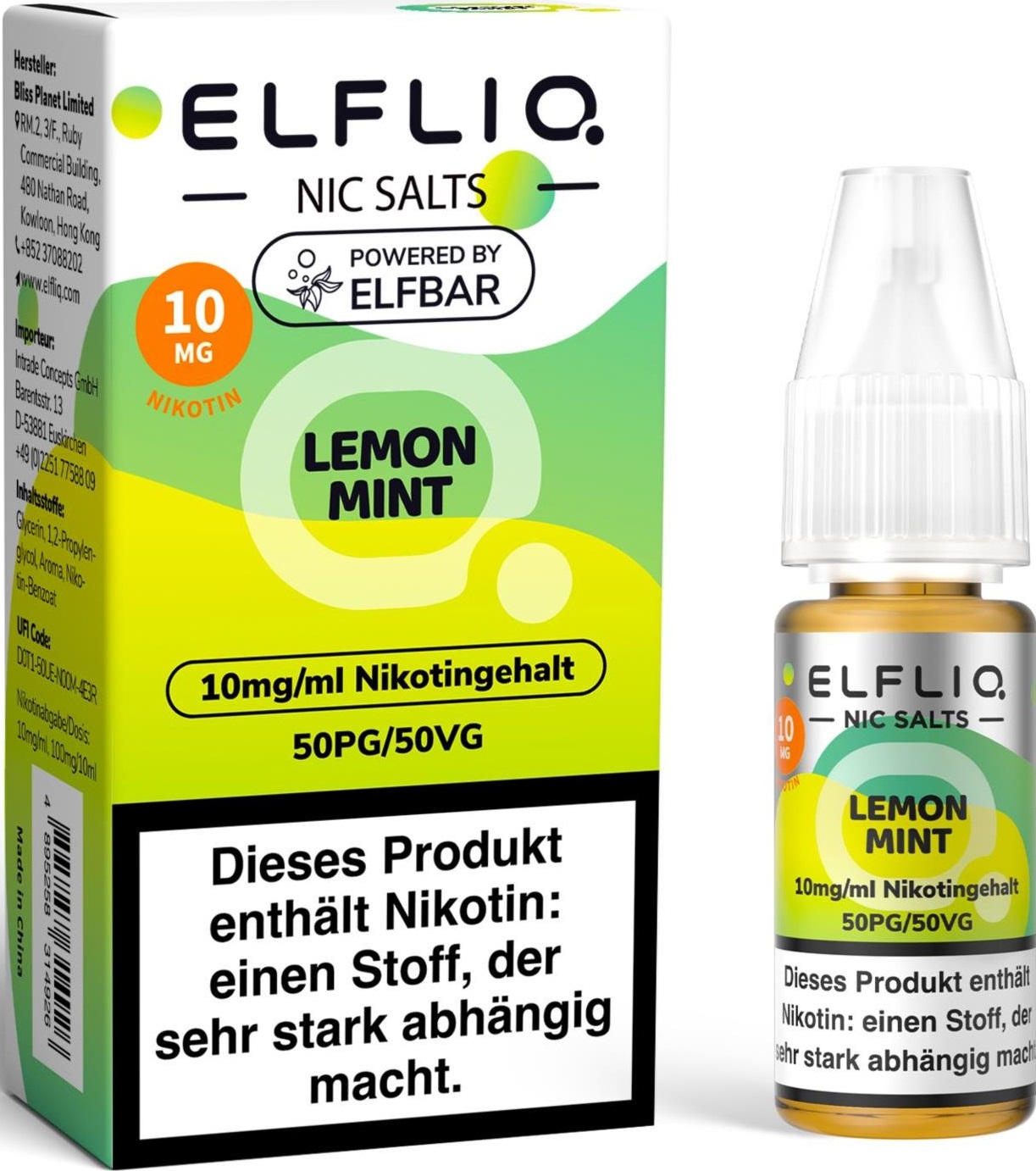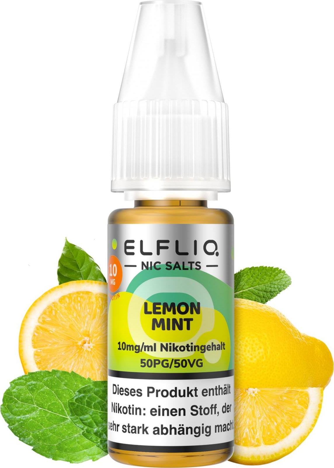E-Liquid ELFLIQ Nic Salts made by Elfbar - Lemon Mint (Limone Minze) in 10er Abpackung 10mg Nikotin, 10ml Inhalt (Einzelverpackung mit EAN) Mischung 50% Propylene Glycol - 50% pflanzliches Glycerin (mit Steuerbanderole C - Steueranteil 2,60)