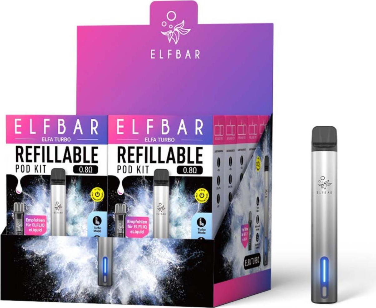 ELFBAR ELFA Turbo Kit mit Leerpod (2ml) 0.8 Ohm Aurora Black 550mAh, verstellbar 15/18W, Ladestandsanzeige, 3-Zug-Technik mit USB Kabel, in 10er Abpackung (in Einzelverpackung mit EAN)