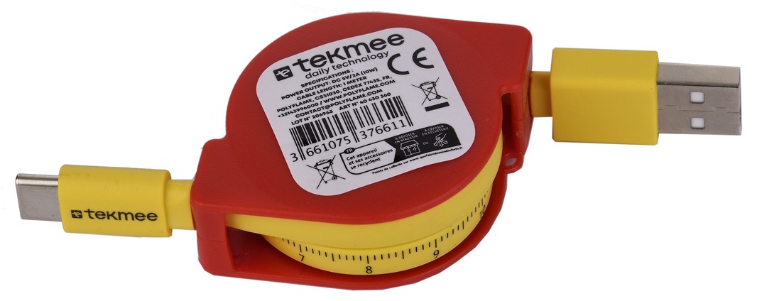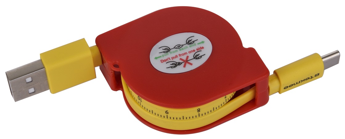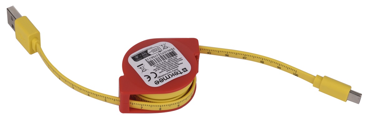 TEKMEE Ladekabel Typ-C / USB, 1m, 2,0A, als ausziehbares Maßband, im 12er Ausfteller (Kabel mit EAN)