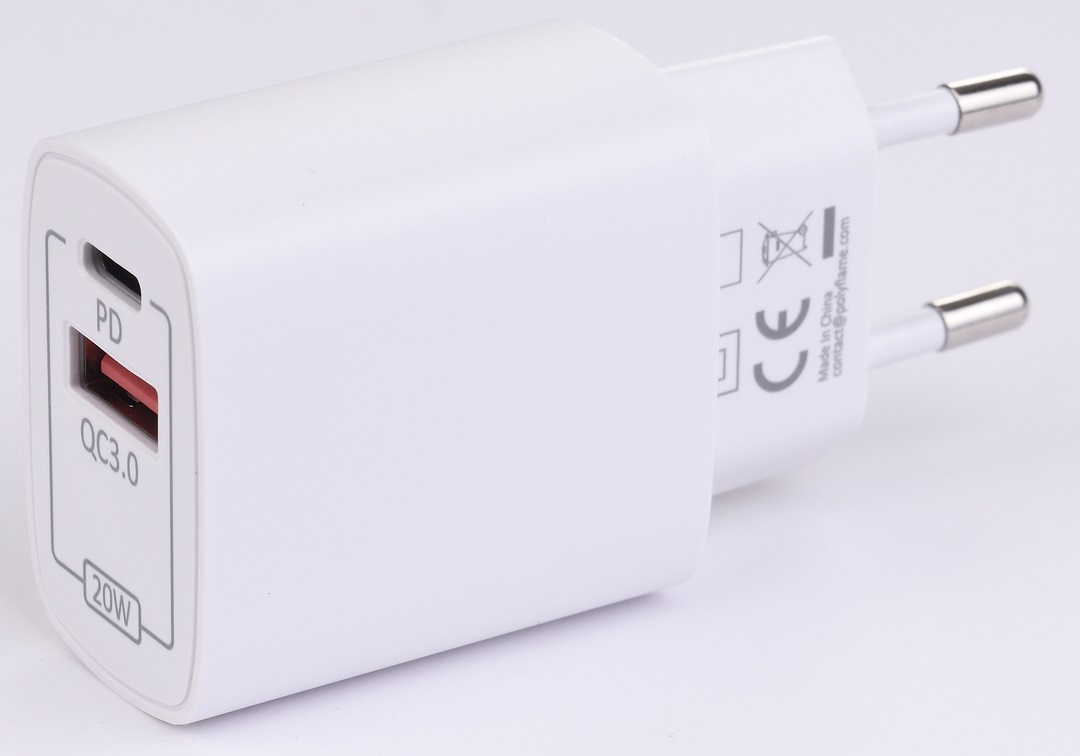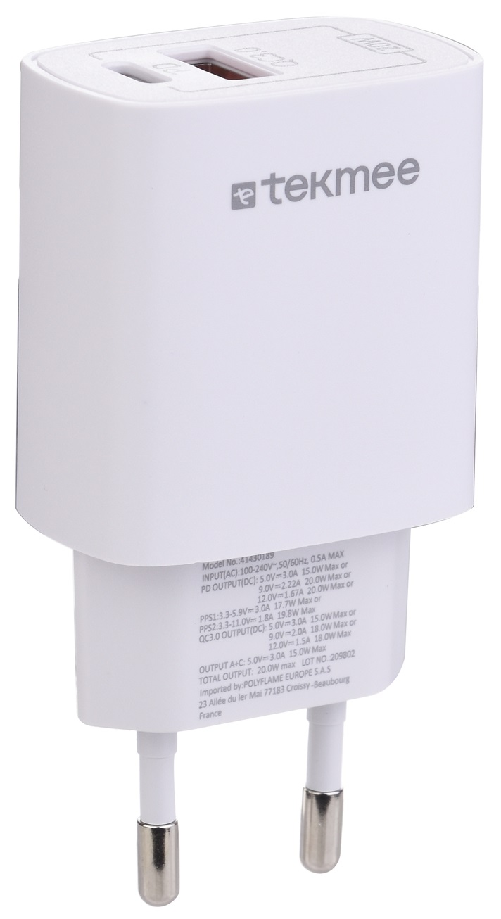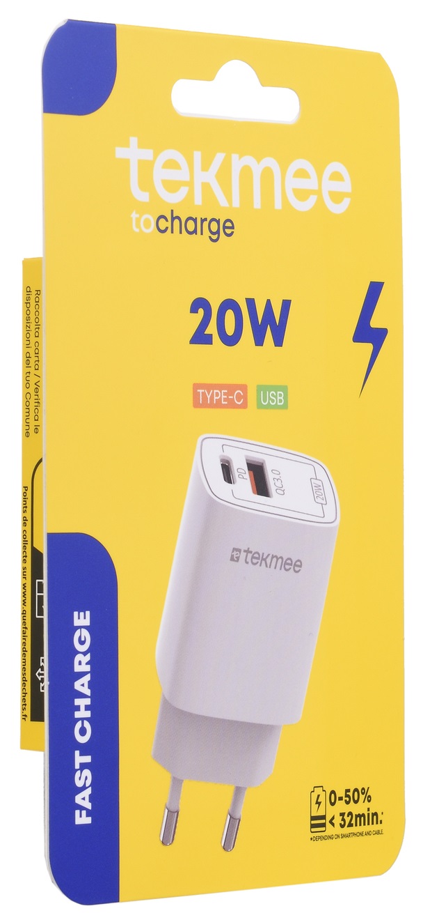 TEKMEE Duo-Netzstecker FAST CHARGE Typ C & USB, 20W, 10er Abpackung (auf Blisterkarte mit EAN)