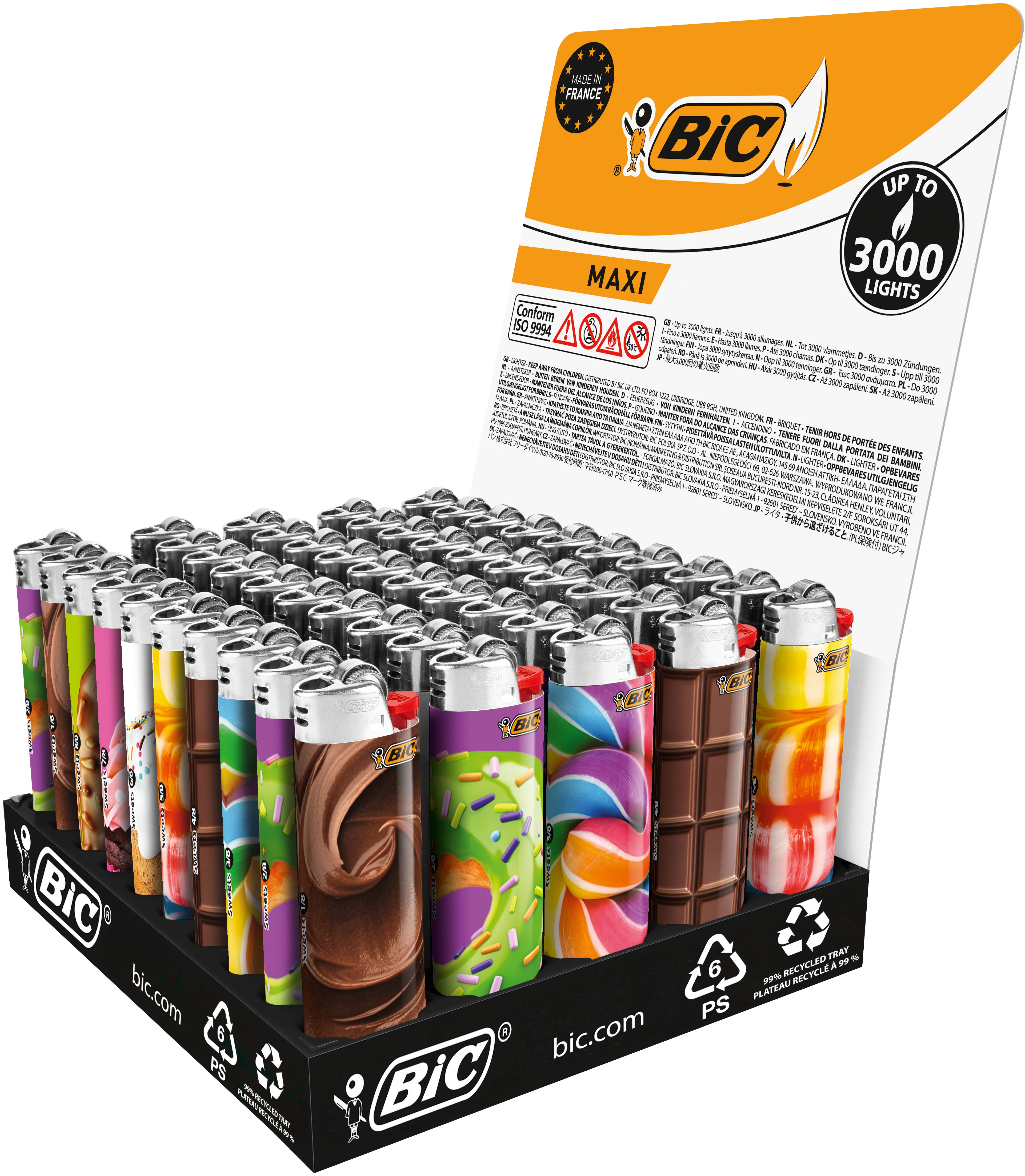 Maxi BiC Motiv, kindergesichert, mit EAN-Sticker, im 50er Aufsteller, Motiv - Sweets (einfach zum Reinbeißen: 8 leckere Motive) Mengenstaffel mit anderen Motiven kombinierbar