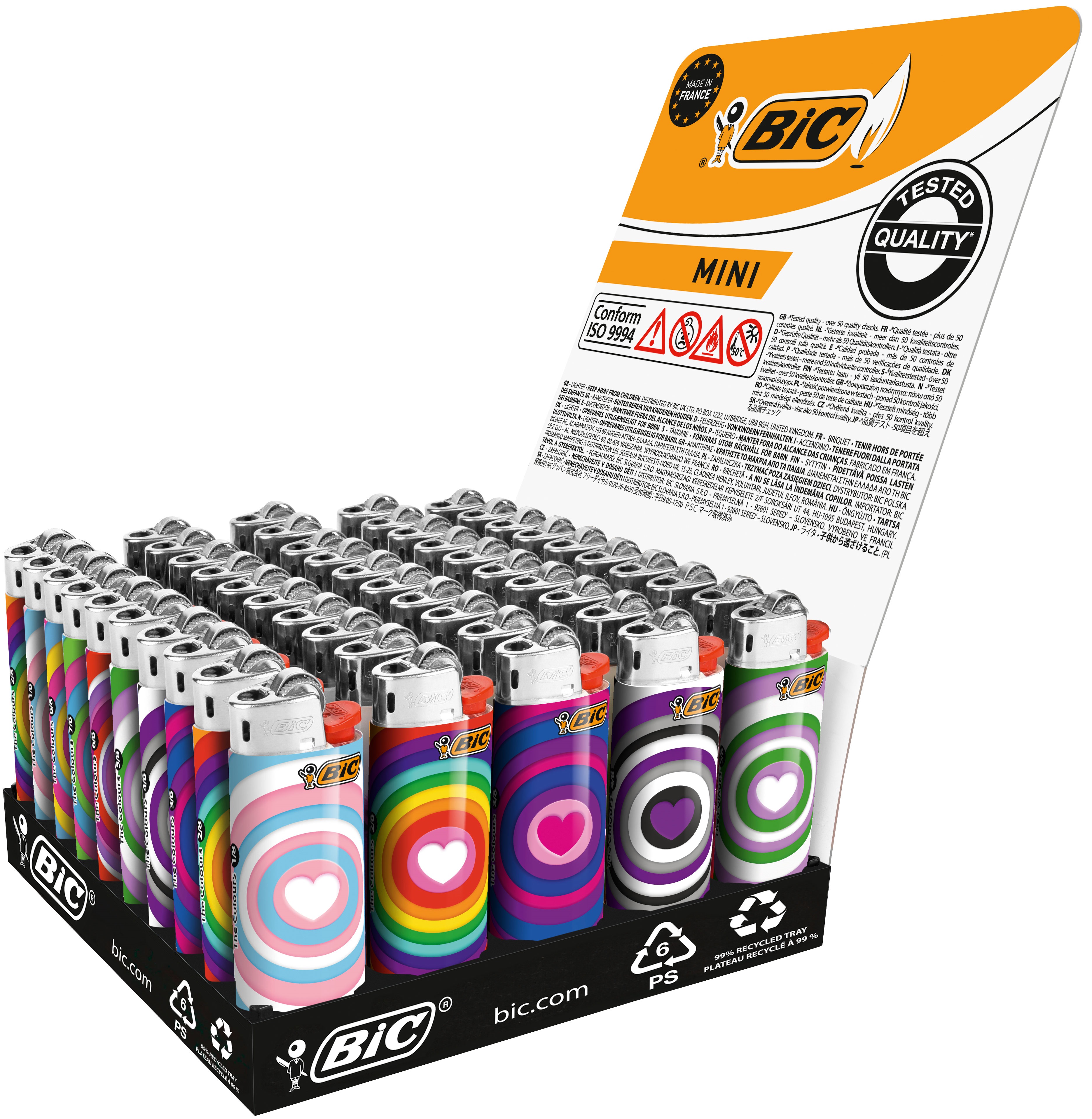 Mini BiC Motiv, kindergesichert, mit EAN-Sticker, im 50er Aufsteller, Motiv - Colors (Hier wird´s bunt! Für jeden die passend Farbkombination) Mengenstaffel mit anderen Motiven kombinierbar