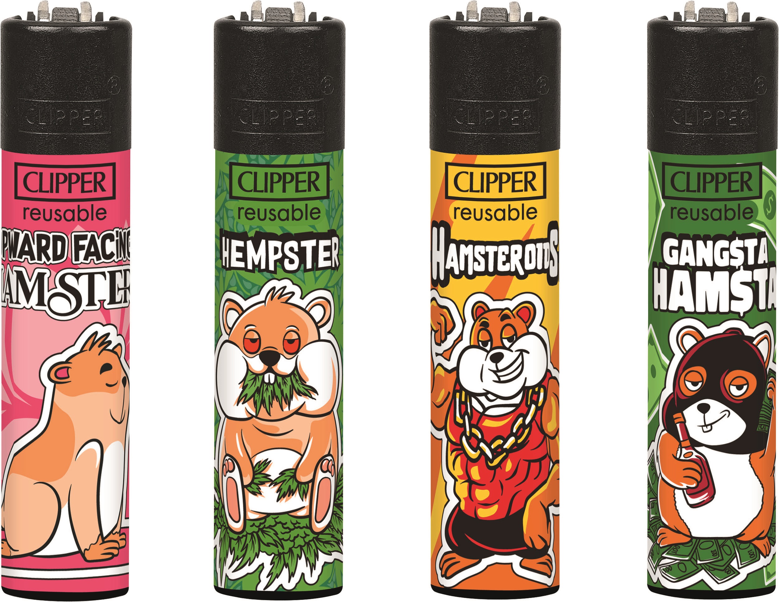 Clipper-Feuerzeug, nachfüllbar, im 48er Aufsteller, Feuerzeuge mit EAN, kindergesichert. Motiv: Hamster