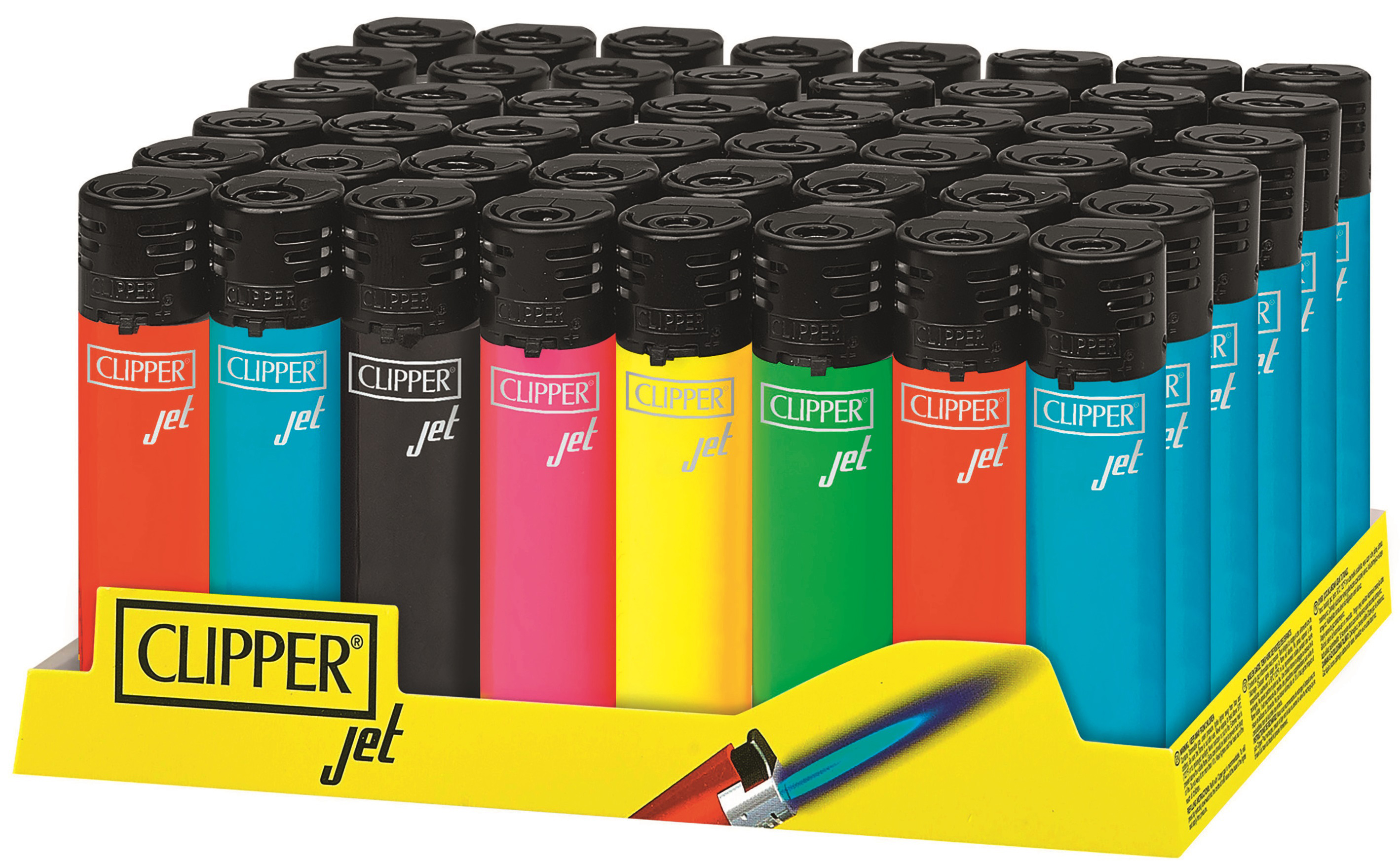 Clipper-Feuerzeug, nachfüllbar, Jet Flame, Shiny Colors, 6 Farben sortiert, im 48er Aufsteller, (Feuerzeuge mit EAN)