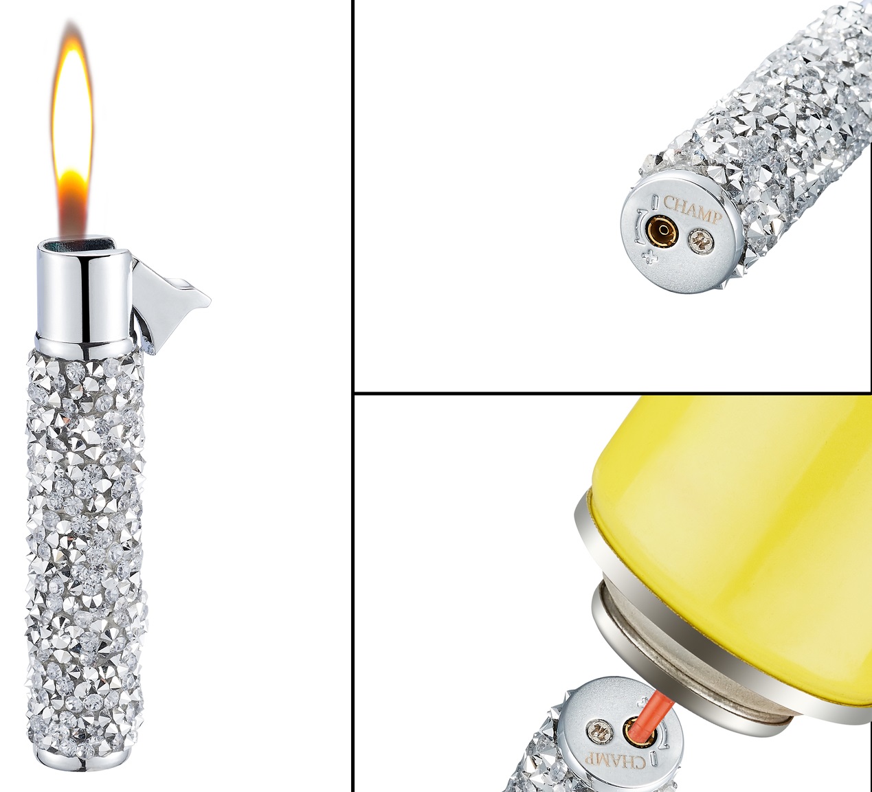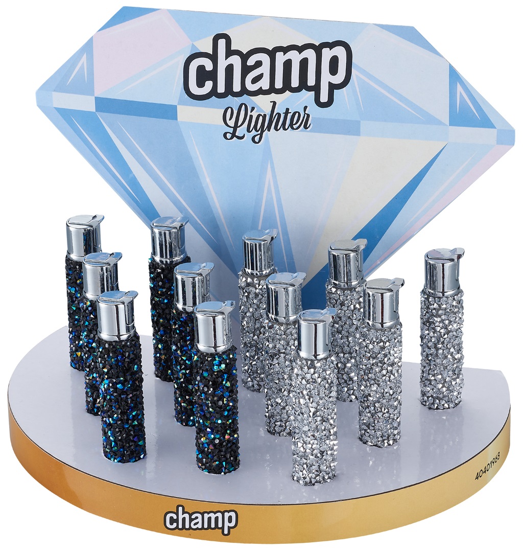 Elektronisches Feuerzeug, nachfüllbar, CHAMP Diamond, 4 Motive sortiert, im 12er Aufsteller (Feuerzeuge mit EAN)