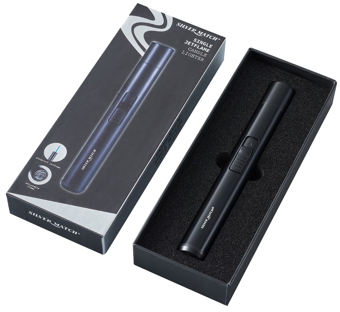 Stabanzünder, Jet-Flame, nachfüllbar, SILVER MATCH schwarz, ca. 16,8cm, in Einzelverapckung (mit EAN)