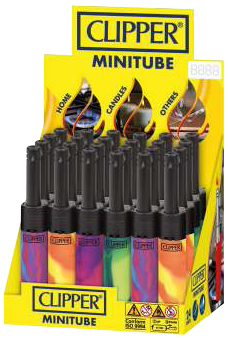 Stabanzünder Clipper Mini Tube Nebula Mix 1, nachfüllbar ca. 11 cm, 4 Farben/Motive sortiert, im 24er Aufsteller (Stabanzünder mit EAN)