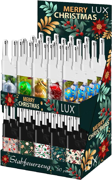 Weihnachten/Christmas: Mini BBQ, elektronischer Stabanzünder, LUX Christmas, nachfüllbar, 10,5 cm, mit EAN, im 50er Doppel-Theken-Aufsteller