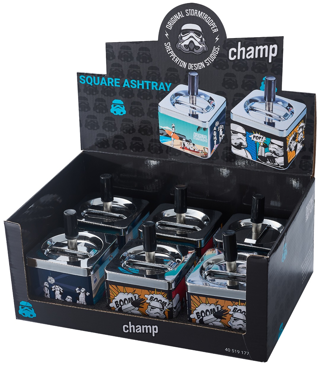 Drehaschenbecher CHAMP Stormtroopers, 2 Motive sortiert, Durchmesser ca. 8,5cm , im 6er Aufsteller (Ascher mit EAN)
