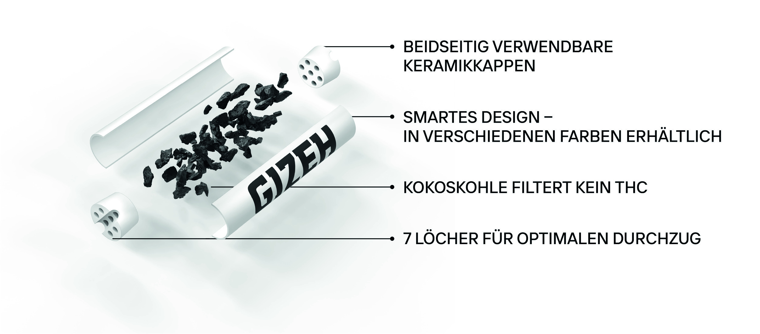 Gizeh Black Active Slim Filter, Länge 27mm - Durchmesser 6mm, Kokoskohle, mit Keramikkappen zum Eindrehen. (10 Beutel á 50 Filter)