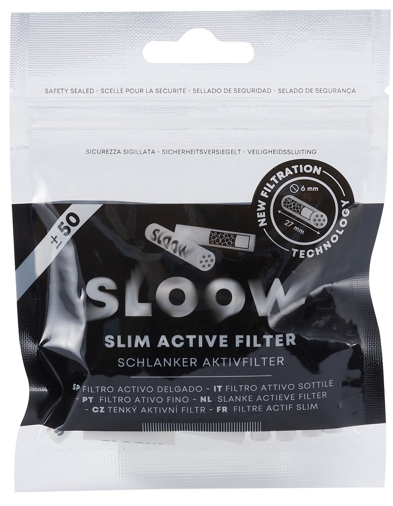 SLOOW Active Slim Filter, Länge 27mm und Durchmesser 6mm, 10 Päckchen á 50 Filter (mit EAN)
