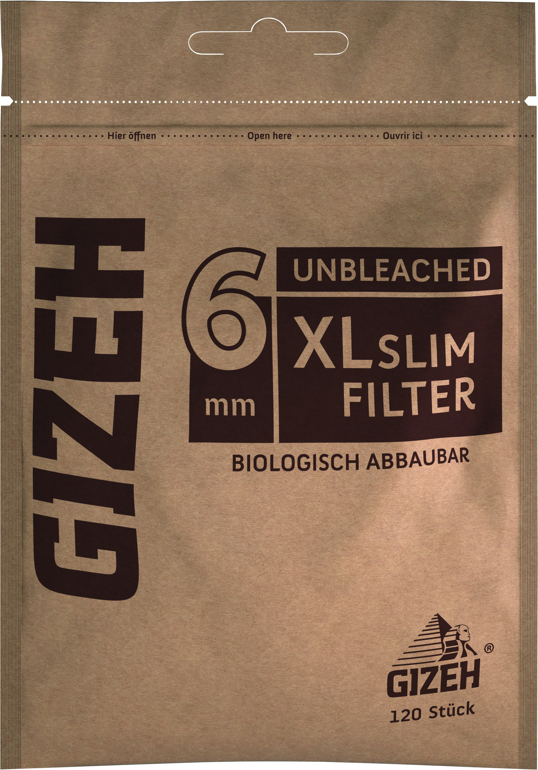 Gizeh Unbleached XL Slim Filter, 10 Beutel á 120 Filter (Durchmesser 6 mm - Länge 19mm)