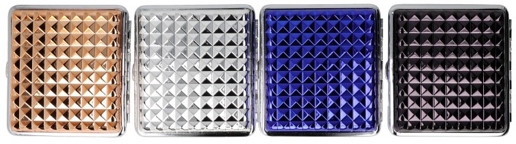 Zigarettenetui ZORR Metall Stone Optik, 4 Farben sortiert, im 18er Aufsteller (Etuis mit Spange und EAN)